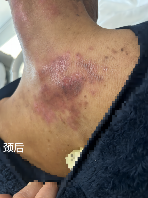 Dr. Deng Jianhua dari klinik spesialis pernapasan menyambut Pak Wang dengan ramah. Berdasarkan kondisi awal, Dr. Deng awalnya mempertimbangkan adanya masalah pada sistem pencernaan. Namun, setelah pemeriksaan fisik, tidak ditemukan tanda sakit perut atau gejala sakit saat ditekan, dan hasil CT abdomen di rumah sakit sebelumnya hanya menunjukkan adanya kista di hati. Dr. Deng kemudian melakukan analisis riwayat kesehatan secara mendalam dan teliti dengan pemeriksaan fisik menyeluruh. Dalam sebulan terakhir, selain gejala lemas dan kurang nafsu makan, Pak Wang juga mengalami sesak napas, nyeri di bagian tenggorokan, nyeri lidah, nyeri otot di tangan dan kaki, serta riwayat gout (radang sendi yang terjadi ketika kadar asam urat dalam darah tinggi ). Pemeriksaan fisik menunjukkan adanya ruam merah dan bintik-bintik pada kulit seluruh tubuh, terutama di sekitar pangkal ekor dan siku kanan, serta kemerahan dan luka terbuka di leher dan pergelangan kaki tanpa rasa gatal. Kulit pada sendi jari-jari tangan juga tampak merah, sedikit hangat, dan agak nyeri saat ditekan. Selain itu, terlihat juga lidah dengan permukaan halus, serta luka di sisi kiri mulut.